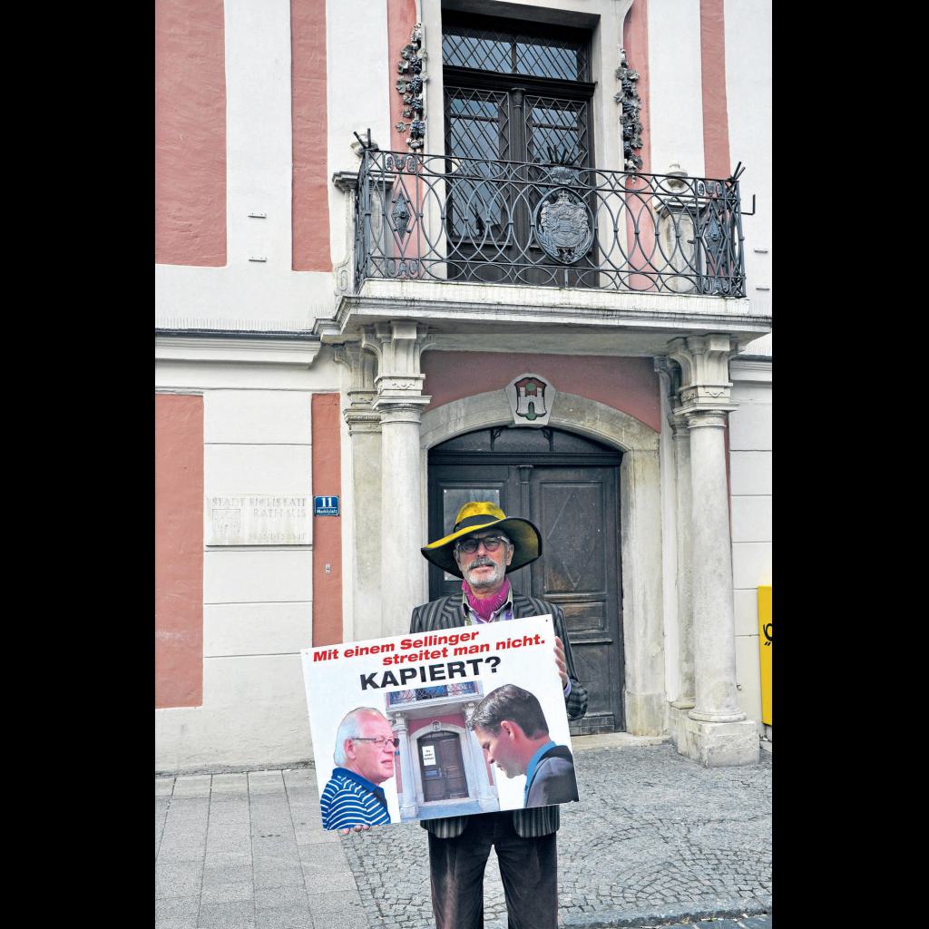 Wolfgang Sellinger erklärte dagegen bestens gelaunt: „Ich bin sehr zufrieden.“ Aus seiner Sicht stehe es „3:0“, verkündete er in einer am Dienstag veröffentlichten Pressemitteilung. Er habe seit 1999, als er mit seiner „Rikscha-Armada“, die damals noch für ein Sonnenstudio geworben hatte, inzwischen in drei Prozessen als „einfacher Bürger“ gegen die Stadt Eichstätt gewonnen. Schon damals konnte der heute 66-Jährige, der sich bereits mit Ende 30 aus dem Berufsleben als Kaufmann zurückgezogen hat und von seinen Immobilieneinkünften lebt, mit dem Ruf eines pedantischen Querulanten sehr gut leben und hatte gegenüber unserer Zeitung erklärt: „Ich lege sehr viel Wert auf mein Recht und habe im Gegensatz zu normal arbeitenden Menschen Zeit und Geld genug, um es auch durchzusetzen.“ Das setzt er in die Tat um.